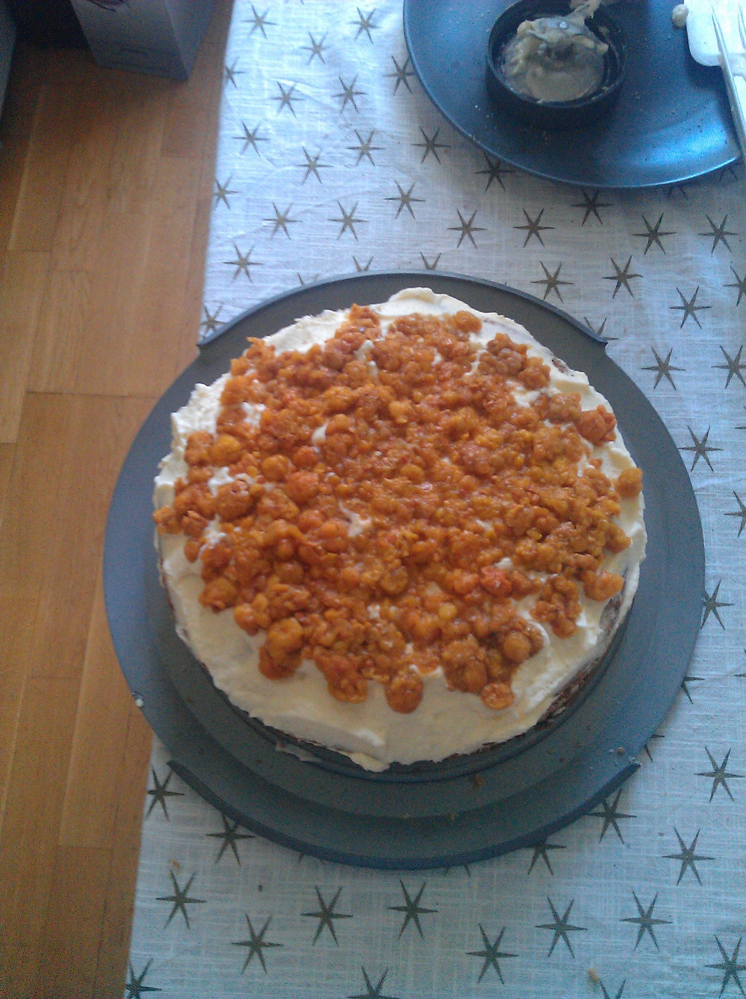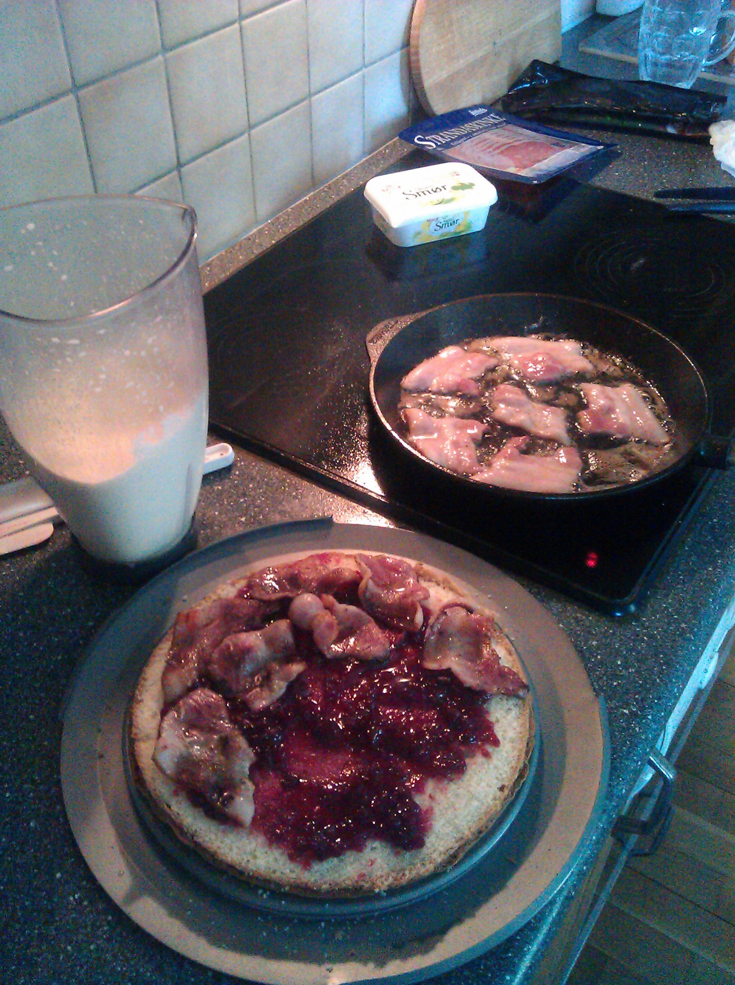Cake layer 1, lingonberries jam and fried ham