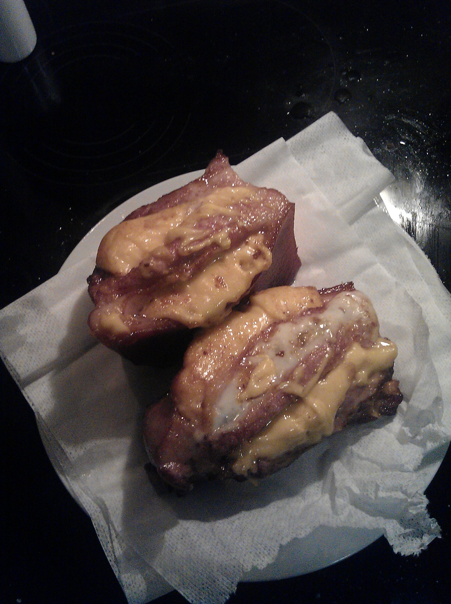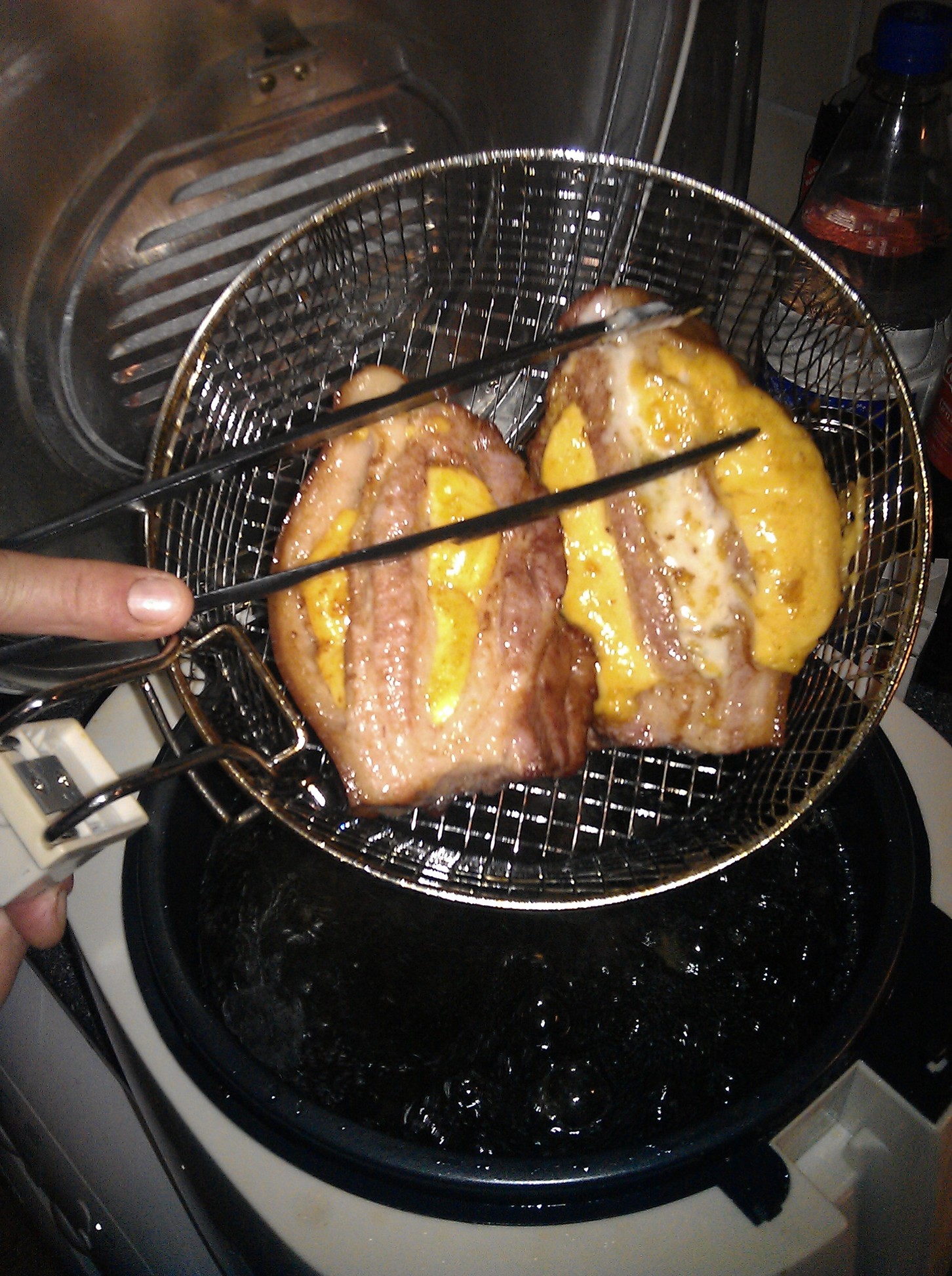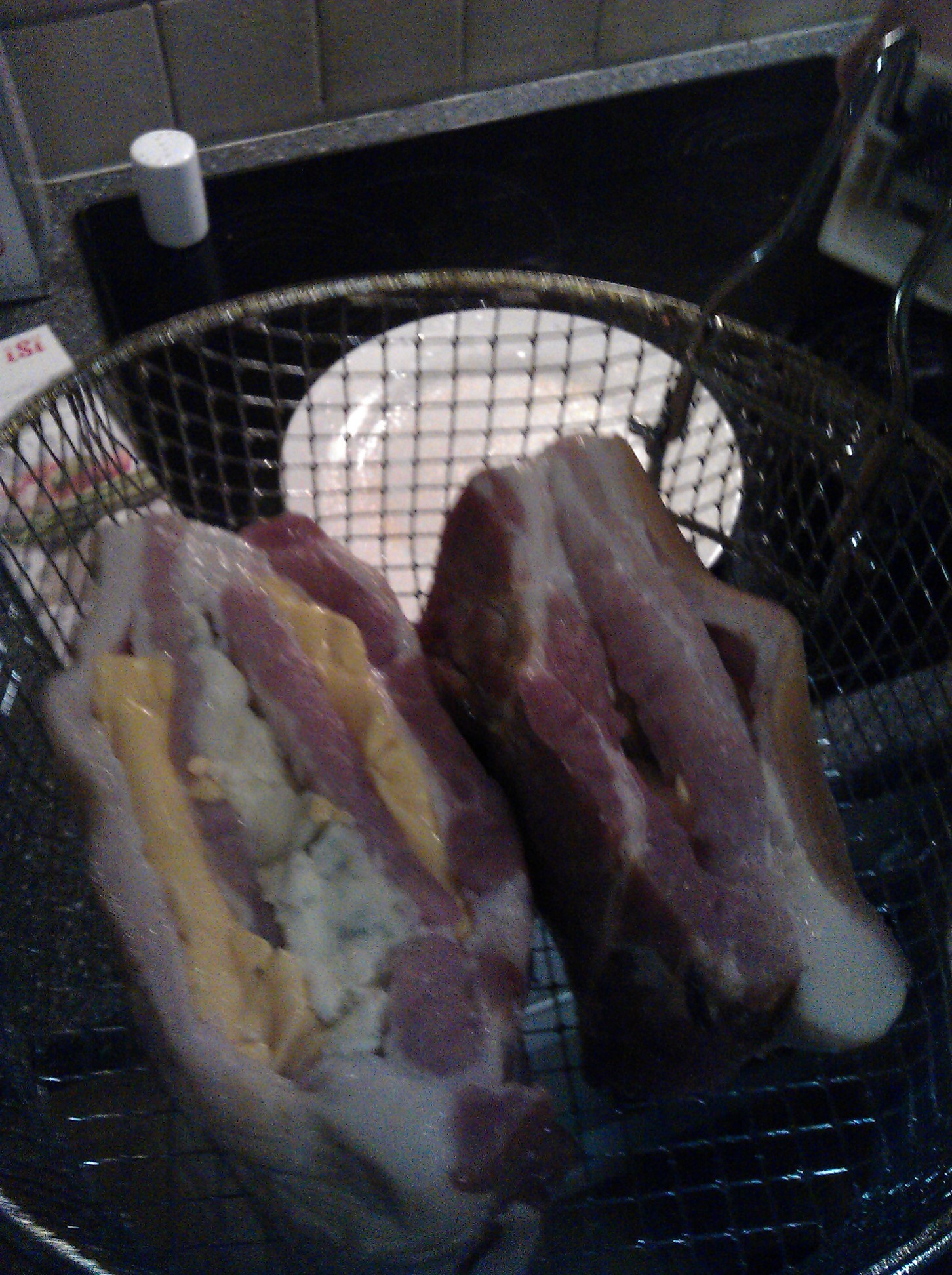 Deep fried bacon stuffed with cheese