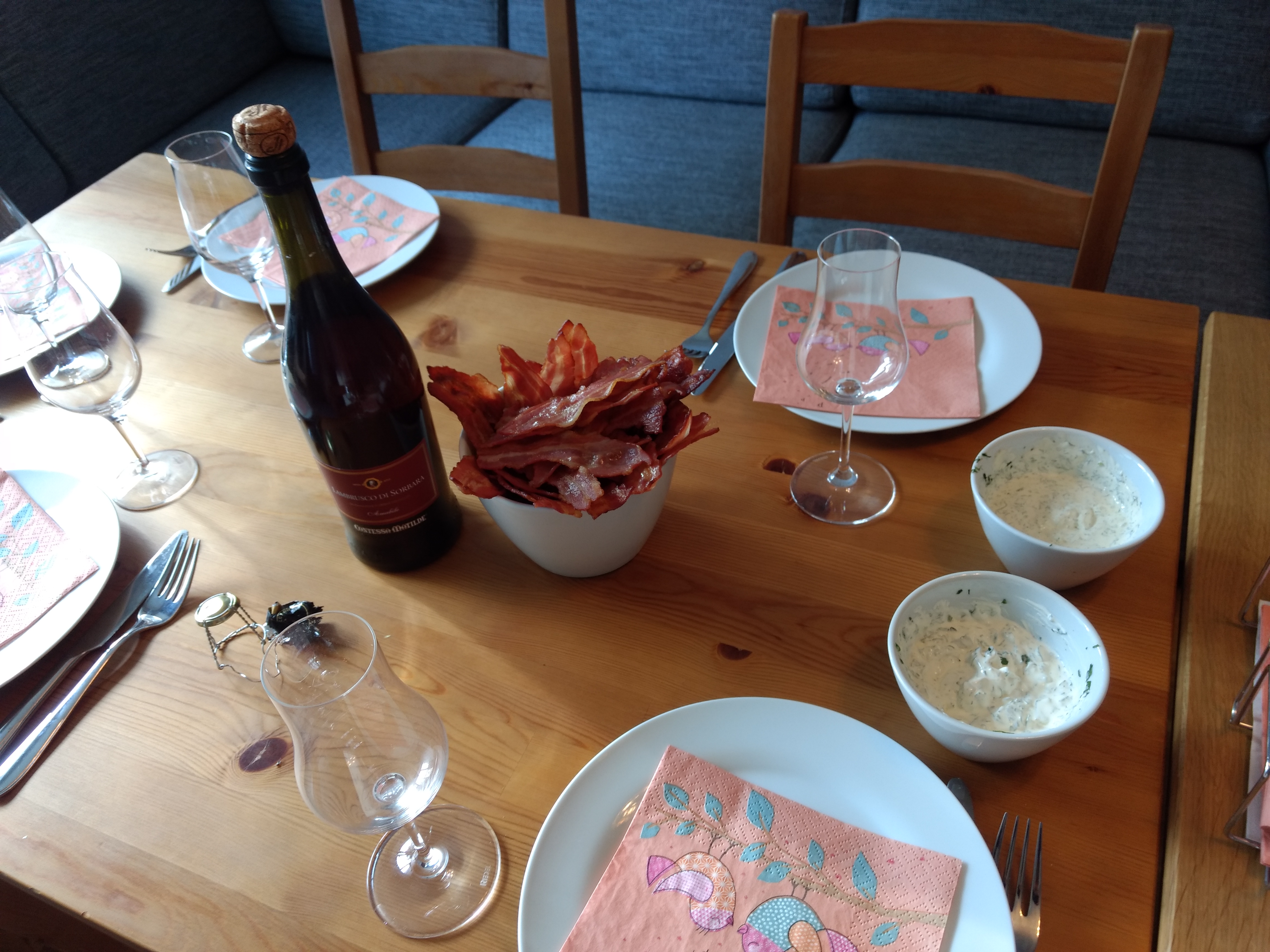 Bacon, dip and lambrusco