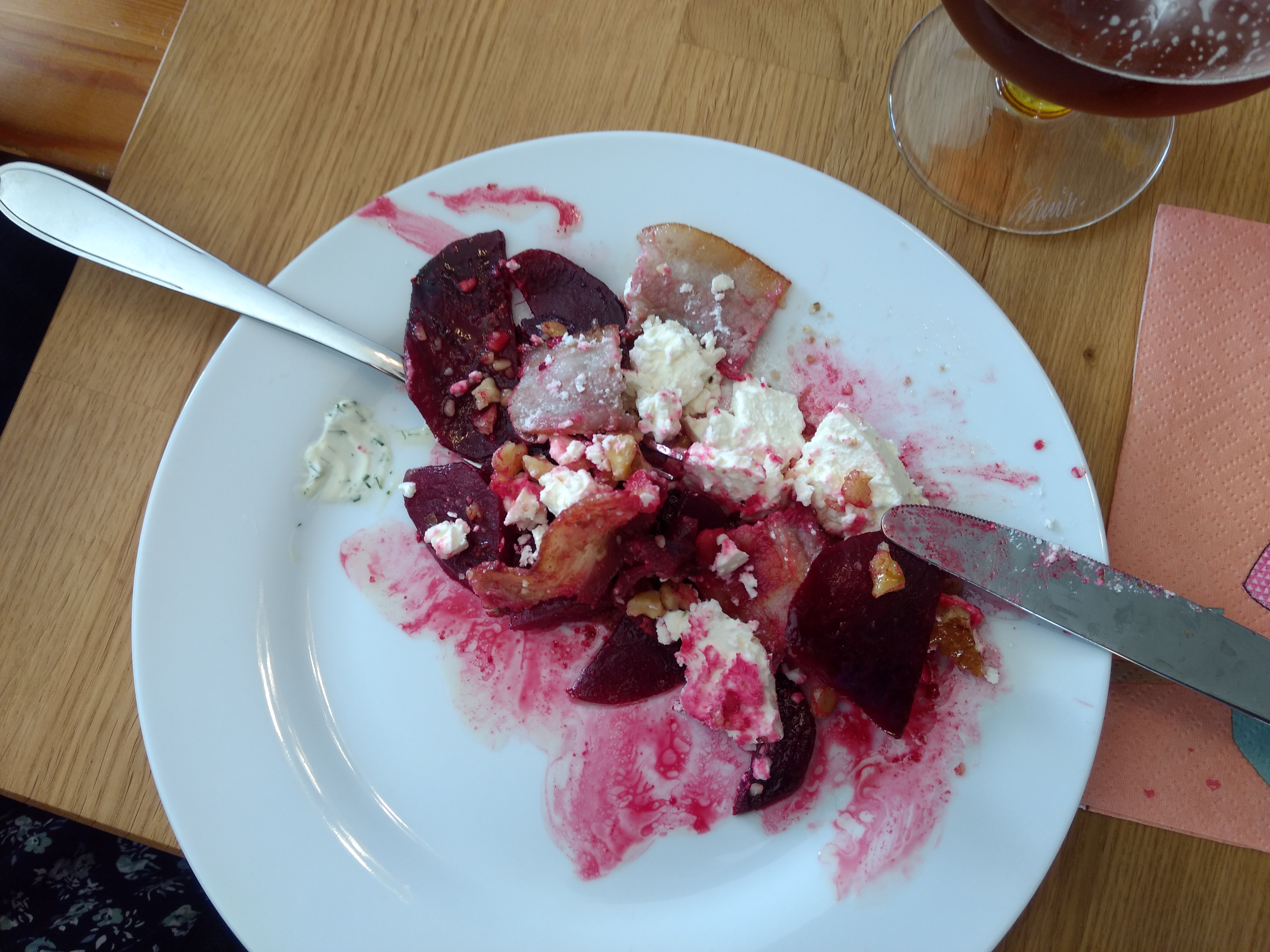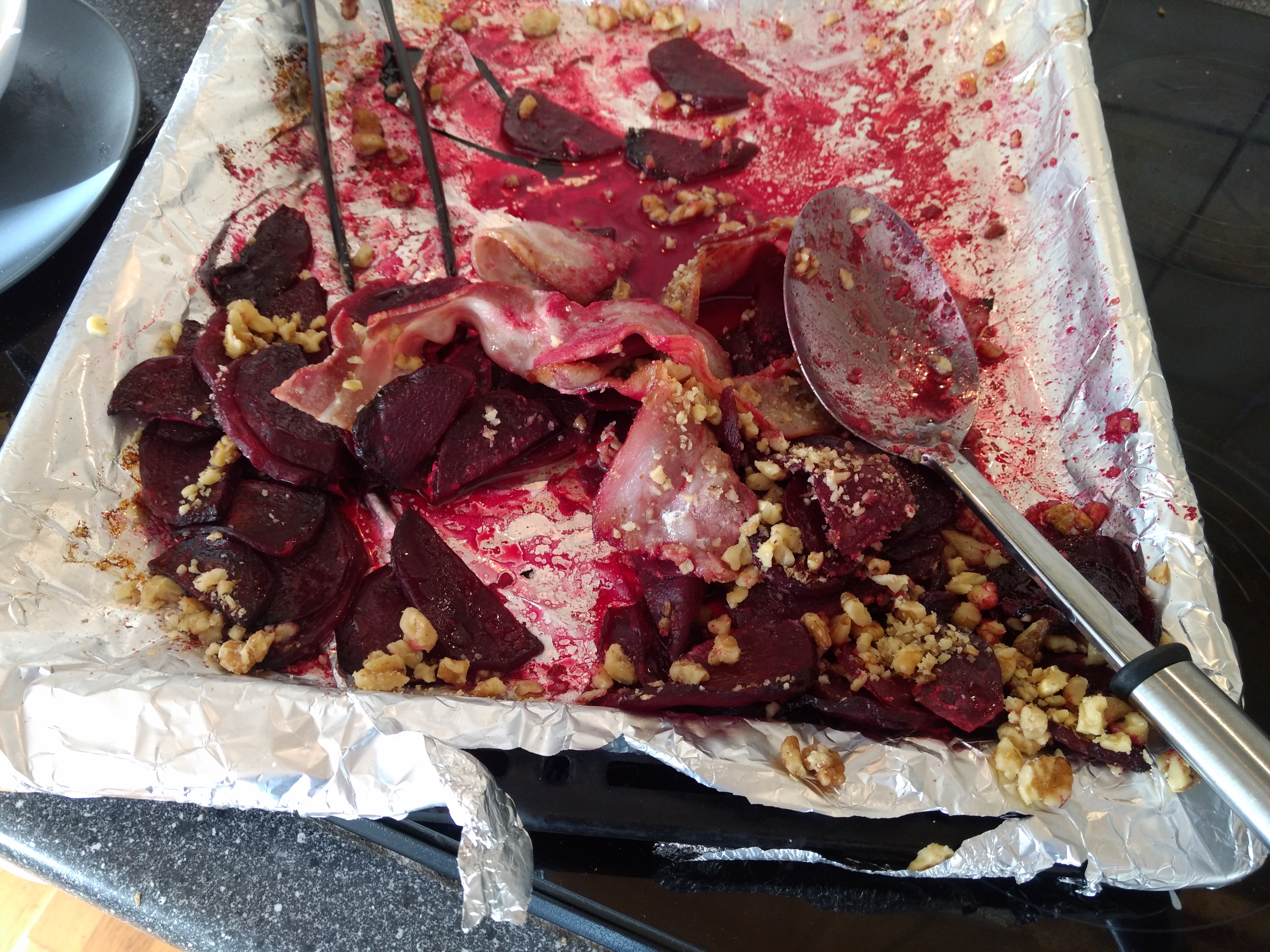 Baked beets, bacon, walnuts and feta cheese